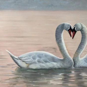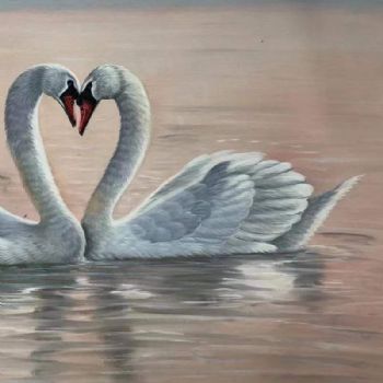 首页 --> 艺术商城 --> 动物油画 --> 天鹅 --> 字画美官方旗舰店 --> 纯手绘动物油画天鹅爱心图写实油画适合卧室床头挂画