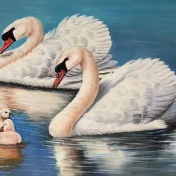 首页 --> 艺术商城 --> 动物油画 --> 天鹅 --> 字画美官方旗舰店 --> 天鹅一家亲图纯手绘动物油画写实油画适合客厅卧室床头挂画