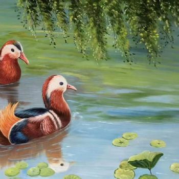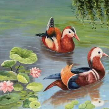 首页 --> 艺术商城 --> 动物油画 --> 鸳鸯 --> 字画美官方旗舰店 --> 纯手绘动物油画新中式夫妻恩爱鸳鸯图写实油画家庭和睦的寓意