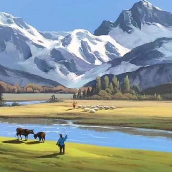 首页 --> 艺术商城 --> 油画风景画 --> 村庄风景油画 --> 字画美官方旗舰店 --> 现代艺术当代油画纯手绘山水画清新淡雅风格沙发背景墙油画
