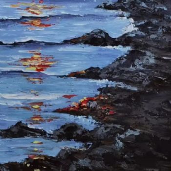 • 海边的霞光现代当代艺术纯手绘油画风景山水画厚肌理大写意风景油画