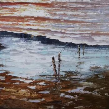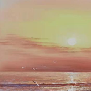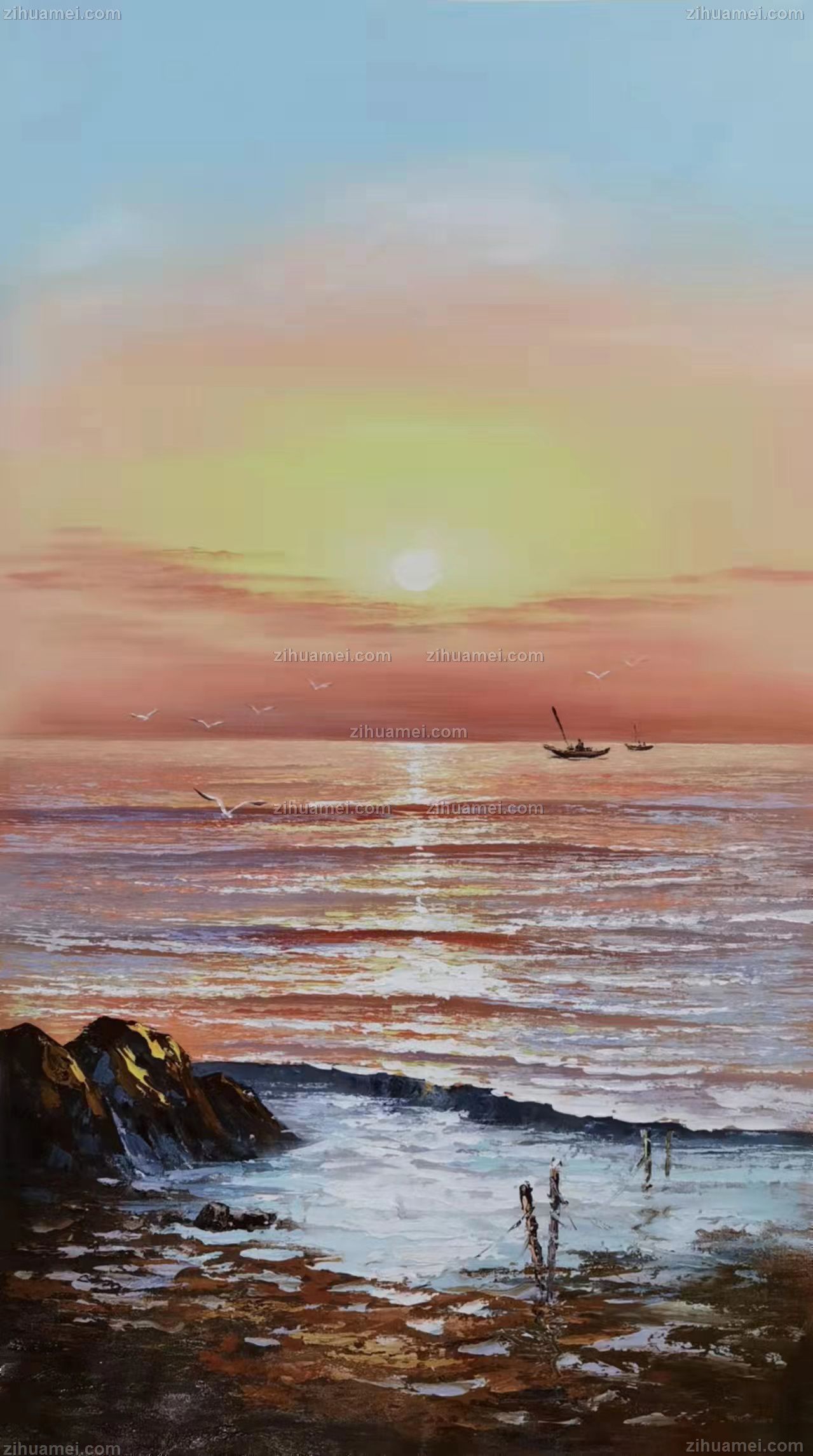 • 抽象大写意风景油画海边的霞光现代艺术纯手绘油画风景山水画厚肌理立体油画