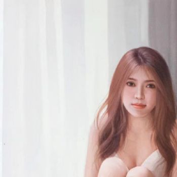 • 穿着白丝袜的少女纯手绘人物写实油画美女油画人体肖像油画