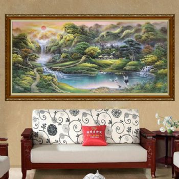 • 新中式油画纯手绘山水油画写实风景画实木角花框精品风景油画