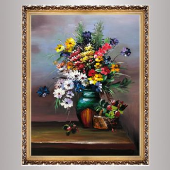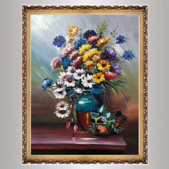 • 纯手绘油画花卉油画写意花瓶与花朵装饰油画平安富贵卧室餐厅装饰油画实木画框