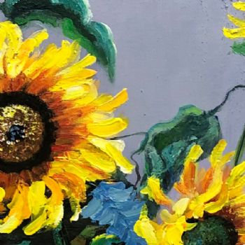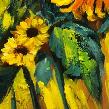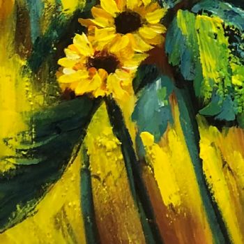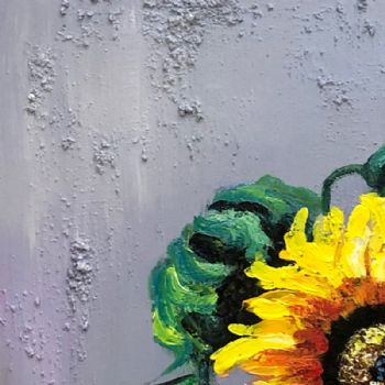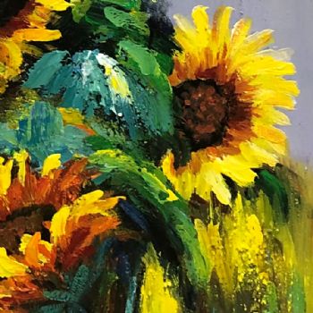 • 厚肌理手绘大写意花卉油画竖幅向日葵纯手绘油画实木画框