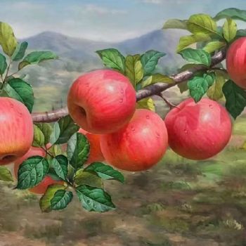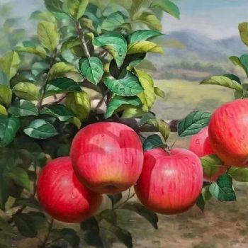 • 红红的苹果树实力画家新中式纯手绘超写实水果静物油画实木画框