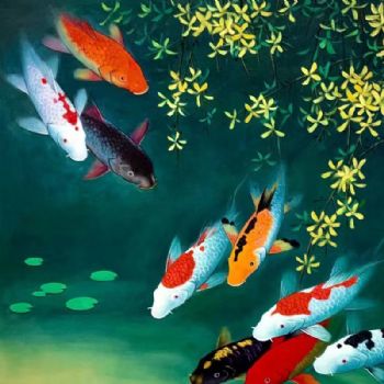 首页 --> 艺术商城 --> 动物油画 --> 九鱼图 --> 字画美官方旗舰店 --> 品质工笔油画新中式纯手绘动物油画适合餐厅走廊动物油画九鱼图