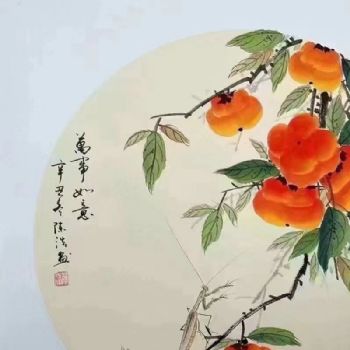 • 手绘水墨画花卉国画万事如意柿子图小写意斗方画小品