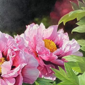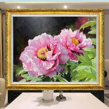 • 新中式油画实力画家纯手绘写实牡丹图寓意花开富贵