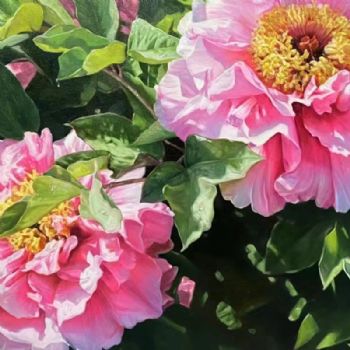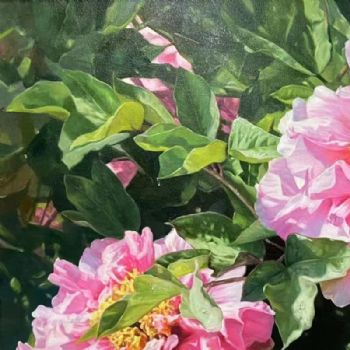 • 精品新中式油画实力画家纯手绘写实牡丹图寓意花开富贵实木画框