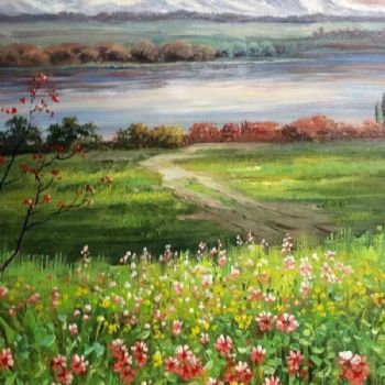 首页 --> 艺术商城 --> 油画风景画 --> 田园风光风景油画 --> 字画美官方旗舰店 --> 红色小花朵花海系列故乡的小河春暖花开纯手绘风景油画