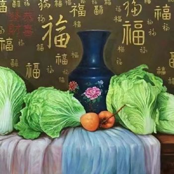 首页 --> 艺术商城 --> 油画静物 --> 白菜静物写实油画 --> 字画美官方旗舰店 --> 纯手绘新中式静物写实油画白菜百福图花瓶柿子油画