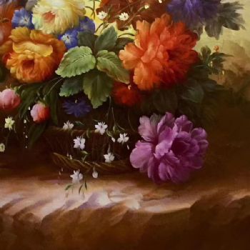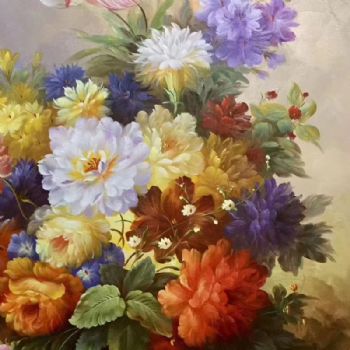 纯手绘古典花卉油画