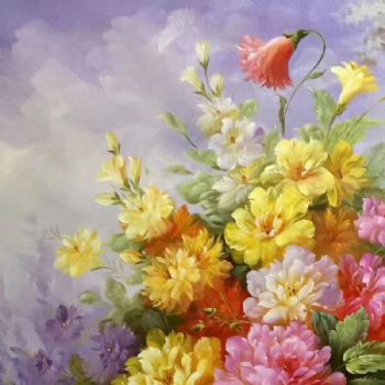 • 欧式古典花卉油画小精品纯手绘的走廊花卉油画