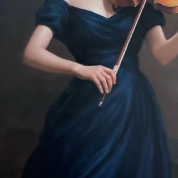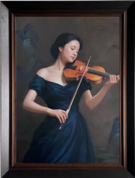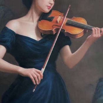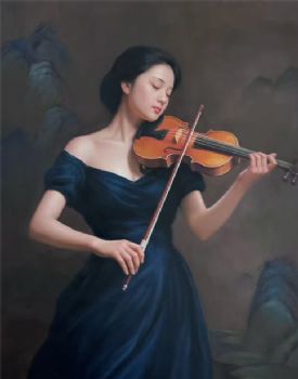 • 人体油画作品纯手绘人物油画拉小提琴的美女油画作品