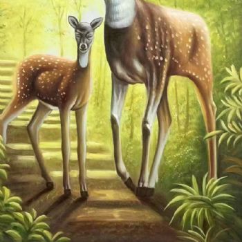 • 吉祥鸽子与小鹿系列纯手绘油画动物油画吉祥和谐情景动物油画