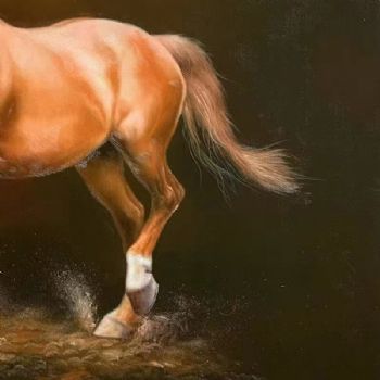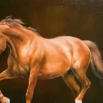 • 骏马系列行进中的棕色大马写实手绘油画实木画框动物油画