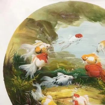 首页 --> 艺术商城 --> 动物油画 --> 九鱼图 --> 字画美官方旗舰店 --> 新中式九鱼图纯手绘油画锦鲤图圆形油画