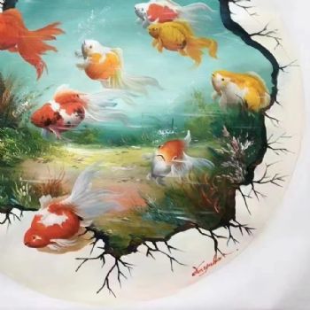 首页 --> 艺术商城 --> 动物油画 --> 九鱼图 --> 字画美官方旗舰店 --> 原创现代新中式九鱼图纯手绘油画锦鲤图圆形油画