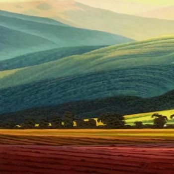 • 纯手绘美式沙发背景墙装饰画巨人山欧式客厅玄关风景油画