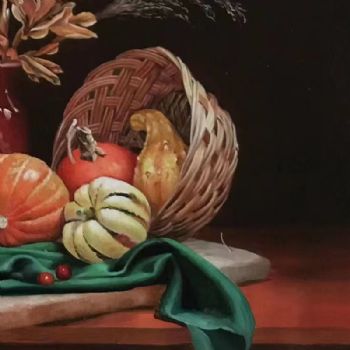 • 纯手绘静物写实油画桌案上的南瓜精品写实油画