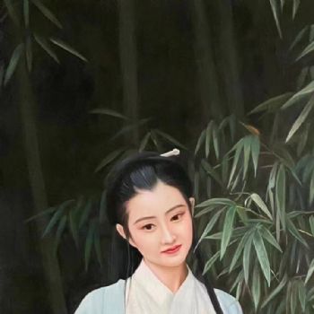 首页 --> 艺术商城 --> 油画人物 --> 中式人物 --> 字画美官方旗舰店 --> 纯手绘人物油画新中式古装人物美女图竹林旁思索者实木画框