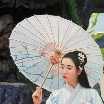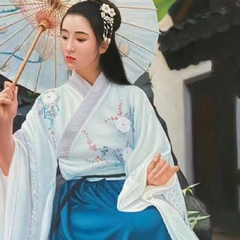 • 油纸伞下的美女图纯手绘人物油画古装美女图写实人物油画