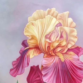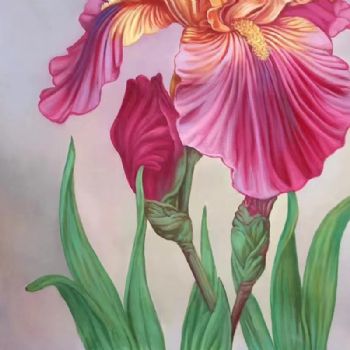 • 手绘精品鸢尾花适合餐厅的精品纯手绘花卉油画实木画框