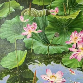 首页 --> 艺术商城 --> 油画风景画 --> 荷塘风景油画 --> 字画美官方旗舰店 --> 新中式手绘写实荷花池风景油画寓意和气生财年年有余实木框