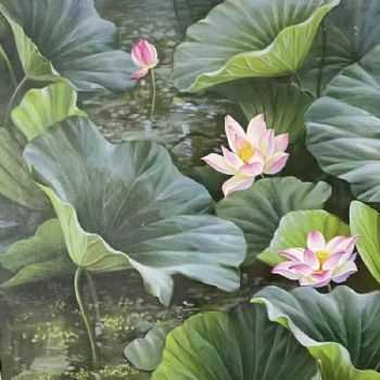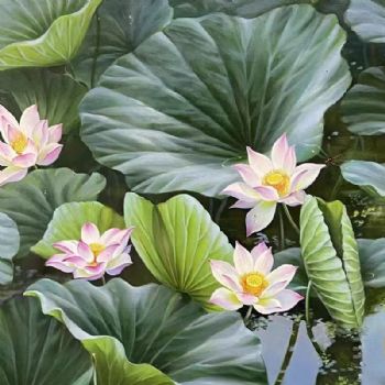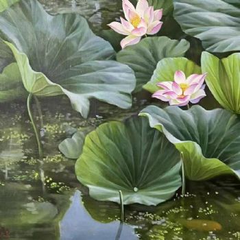 • 精品写实风景油画荷花池