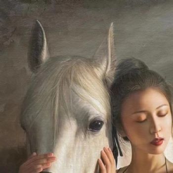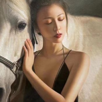 首页 --> 艺术商城 --> 油画人物 --> 中式人物 --> 字画美官方旗舰店 --> 女孩与白马纯手绘写实人物油画作品美女图实木画框
