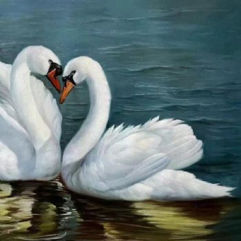 • 适合床头的写实动物油画天鹅