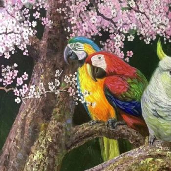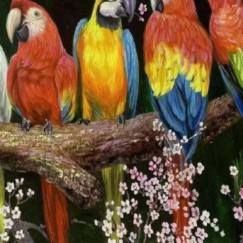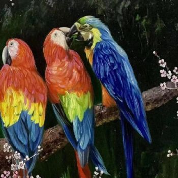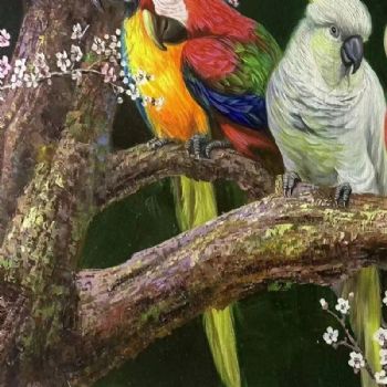 • 适合客厅大厅的动物油画作品鹦鹉图