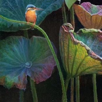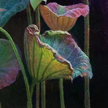 • 适合办公室玄关的荷花池风景油画