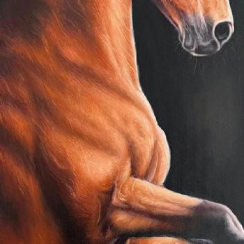 • 精品动物写实油画奔腾的棕色大马纯手绘实力画家油画作品