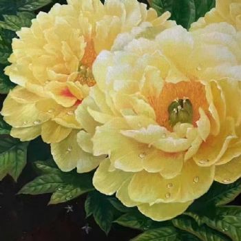 • 适合卧室书房的新中式花卉油画黄牡丹
