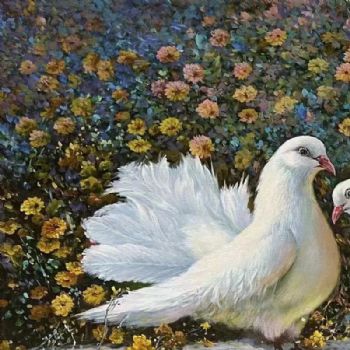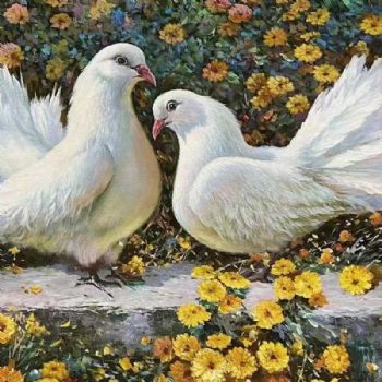 • 经典动物写实油画和平鸽手绘油画寓意和和美美床头挂画