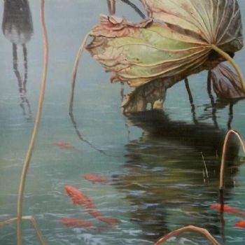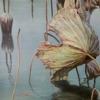 • 写实风景油画高品质荷花池风景油画纯手绘经典动物油画