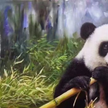 首页 --> 艺术商城 --> 动物油画 --> 熊猫 --> 字画美官方旗舰店 --> 正在享用的熊猫纯手绘写实动物油画适合餐厅的精品油画