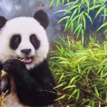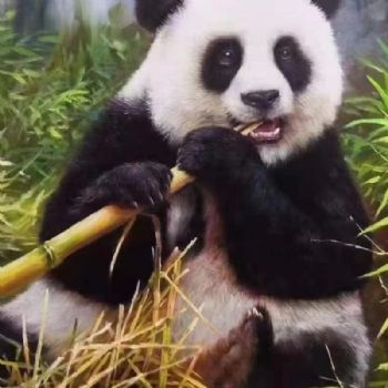 • 正在享用的熊猫纯手绘写实动物油画适合餐厅的精品油画