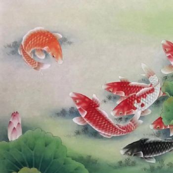 首页 --> 艺术商城 --> 国画花鸟画 --> --> 字画美官方旗舰店 --> 和气生财年年有余新中式纯手绘九鱼图实木画框水墨国画