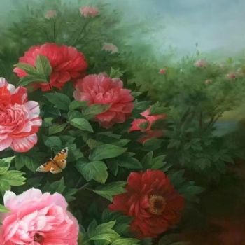 • 新中式客厅油画写实花鸟画牡丹图
