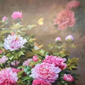 • 适合客厅大厅的新中式花卉油画作品牡丹图
