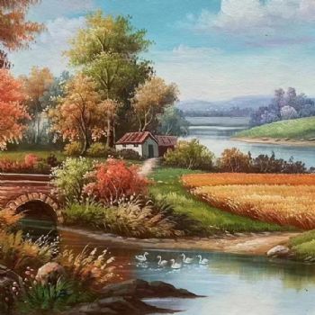 首页 --> 艺术商城 --> 油画风景画 --> 欧美风景油画 --> 字画美官方旗舰店 --> 幸福和谐天鹅风景油画作品纯手绘山水油画安居乐业风景油画实木画框