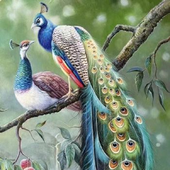 • 纯手绘精品孔雀油画作品