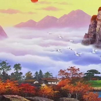 • 秋水共长天一色鸿运当头山水风景油画旭日东升聚宝盆中式油画