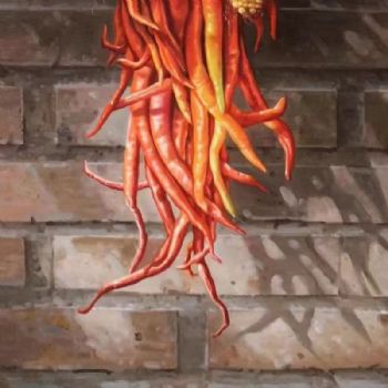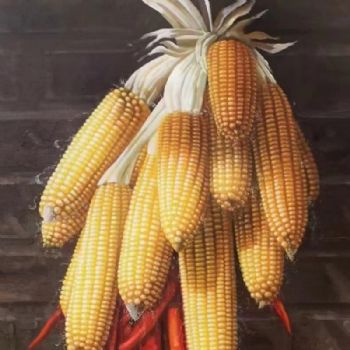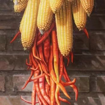 适合玄关客厅的新中式静物油画玉米辣椒图