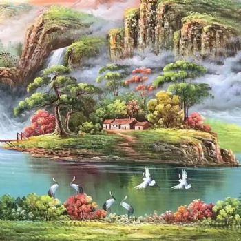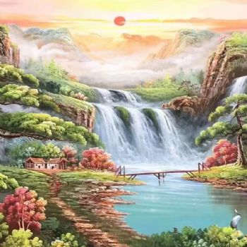 首页 --> 艺术商城 --> 油画风景画 --> 山水画聚宝盆风水画 --> 字画美官方旗舰店 --> 纯手绘大厅客厅风水油画小桥流水人家聚宝盆仙鹤松柏油画实木画框