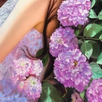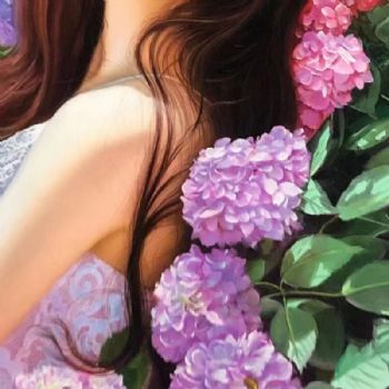 • 花丛中青春美女图纯手绘写实人物油画原创艺术人物画